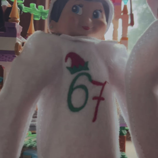 Preorder: Get your elf into the holiday spirit with our Embroidered 67 Elf Sweater. This must-have accessory for your Elf on the Shelf is decorated with the exclusive number 67 and fits snugly for a stylish look.